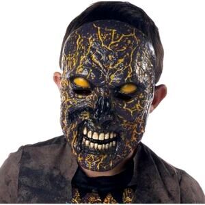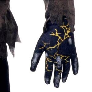 Get ready for a spine-chilling Halloween with this Extreme Scorched Zombie Deluxe Costume! This complete outfit features mask, shirt, gloves, and chest that lights up with battery-operated eyes and sound.