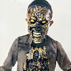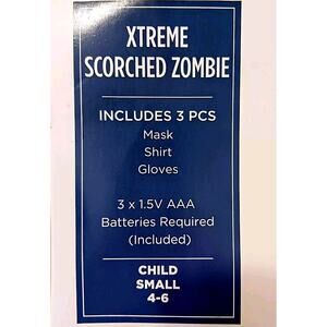 Lights Up Extreme Scorched Zombie Deluxe Costume CHILDS Sz S HALLOWEEN Lights up Zombie EYES Complete With press button Scary Sound (Batteries not included) WORKS w Batteries