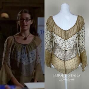Extremely Rare Silk Print Top ASO Fred Angel Blouse Boho ALT Lorelai Gilmore