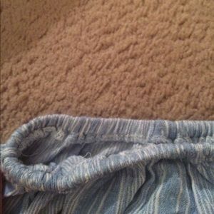 On the shoulder shirt, light blue with white strips. Can stretch out to many sizes!