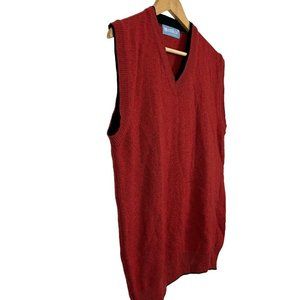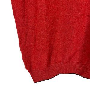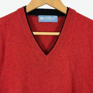Exxilco Men's 100% Lambswool Wool Red Sweater Vest V-Neck Black Trim Pullover 40