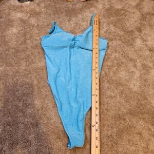Eye Candy Body Suit Light Blue Eyelet Soft Built in Pads Size Small Polyester