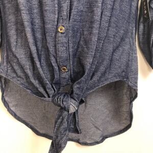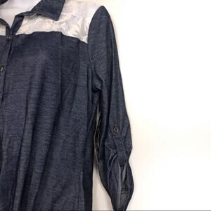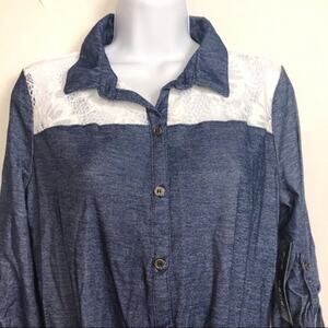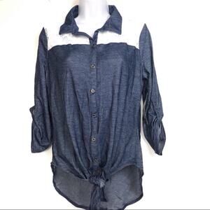 Eye Candy Denim and Lace Front Knot Button Down Size Medium
