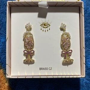 Dazzling gold earrings with pink accents. Perfect for adding sparkle to any outfit.