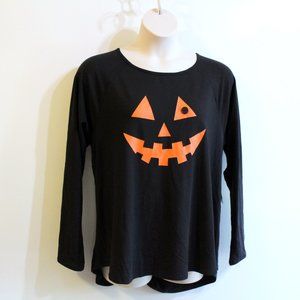 This Halloween shirt is so soft and cozy. The inside of the top feels like brushed fleece. It's medium weight and not heavy. It is new with tags however please know there was a little blemish on one eye, so I sewed a button over it to look it is winking.