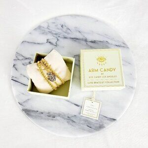 Eye Candy Crystal Hamsa Hand GOLD Bead Bracelet Set