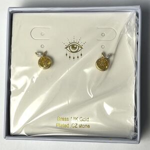 Eye Candy LA Luxe Earrings Crystal LEMON ZEST Fruit 18k Gold Plate CZ Stone Stud