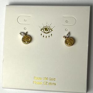Eye Candy Los Angeles The Luxe Collection Earrings Gold-tone LEMON ZEST Fruit 18k Gold plated brass Cubic Zirconia Stones Post Back 0.5 inch