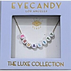 Eye Candy Los Angeles Luxe Collection Necklace 18k Gold Plated Titanium Chain Rainbow 'Equality' Spell Out Plastic Beads New in Box