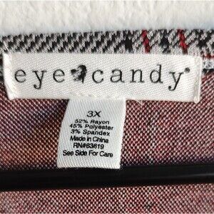 Eye Candy Long Cardigan Duster Open Front Black Red Check 3X Long Sleeve
