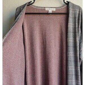 eye candy Long Cardigan Duster Open Front Black Red Check 3X Long Sleeve