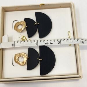 Eye Candy Los Angeles Black Gold Tone Dangle Drop Post Earrings Lightweight New