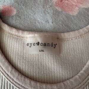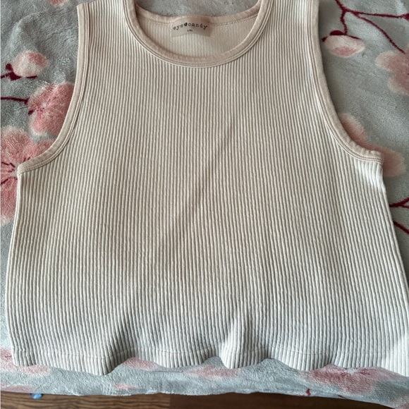 Eye Candy ribbed tank top in a soft cream shade. Ideal for layering or wearing solo.