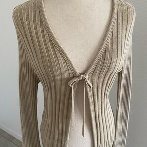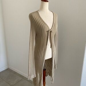 Eye Candy Tan Long Ribbed Cardigan with Deep V-Neck
