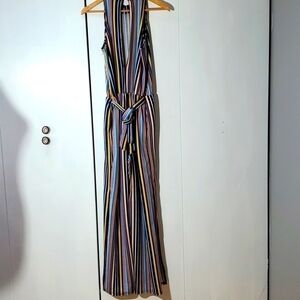 Eye Candy- Womens Multi-Color Striped High neck Jumpsuit 60's 70's Sz.Medium
