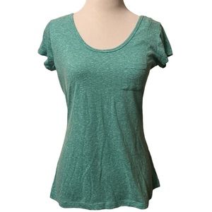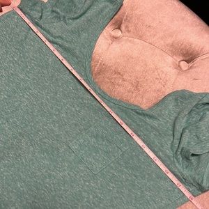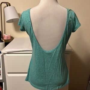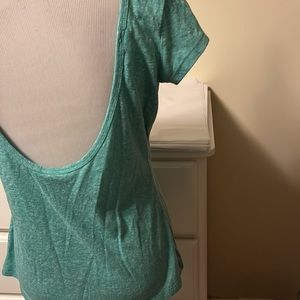 light green short sleeve super soft T-shirt, from the front looks like a regular T-shirt but from the back shows a low-cut open back where you can feature your favorite Cammi or bralette. This is super cozy and comfy but yet looks so cute. Very gently used, no flaws or defects. See photos for measurements.