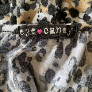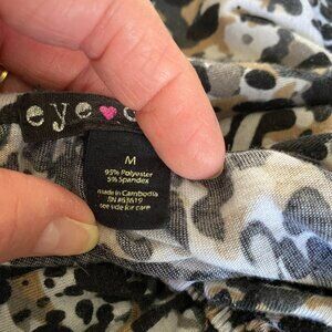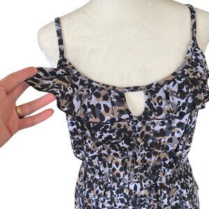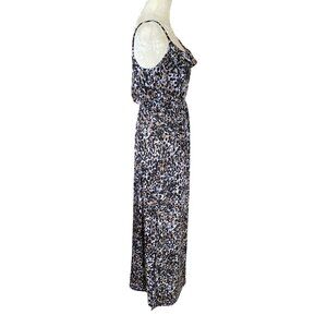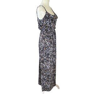 Women's Eye Candy leopard print sleeveless maxi dress, size medium. This long dress is stretchy, has an elastic waistband, non adjustable spaghetti straps, and a ruffle around the front neckline, as well as a 20.5" side slit. Machine washable. Feel free to ask me questions.