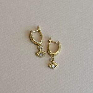Elegant gold hoop earrings featuring eye charms. Perfect for adding a touch of sophistication to any outfit.