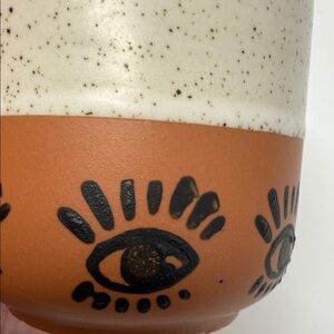 Eye Design Speckled Cream and Brown Ceramic Planter/Vase. Brand New 3x3x3” Decor