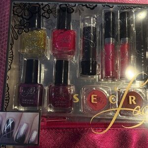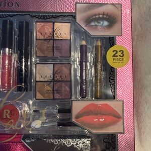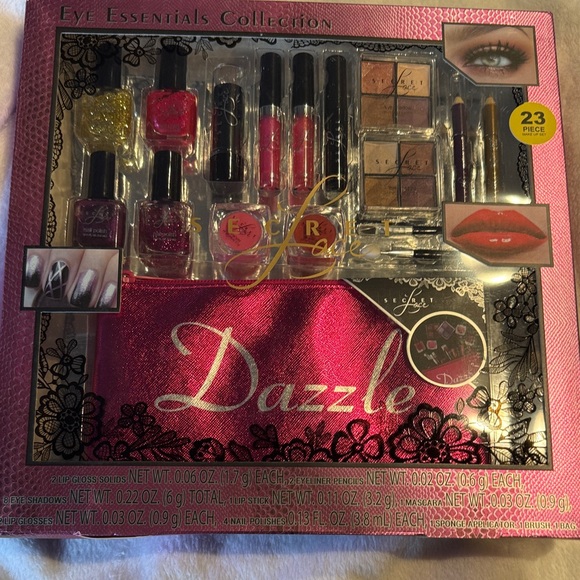 23-piece eye essentials collection. Includes vibrant nail polishes, lip glosses, and eyeshadows. Perfect for creating dazzling looks.