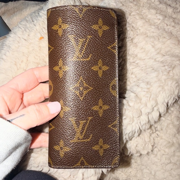 Authentic preloved Louis Vuitton eyeglass case. Does have some staining, rubs and tarnishing. In really good preloved condition