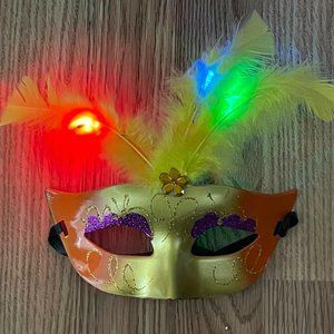 Eye Mask Yellow Faux Feather Mask Masquerade Light Up Mask Women Mask