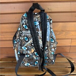 Stylish backpack featuring a unique eye pattern. Perfect for adding a pop of color to your outfit. Clear printed.