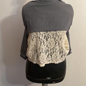 Eye Shadow Gray embellished Cream lace lining top, size XL (100% Nylon, linning 75% cotton, 25% rayon)