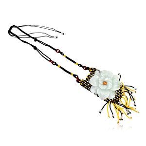 Make a statement no matter what apparel you are wearing when you pair it with the Eustoma Large Floral Jade Pendant Necklace. This necklace features an eye-catching Eustoma flower carved out of nephrite jade and attached to a woven backing for added visual appeal.