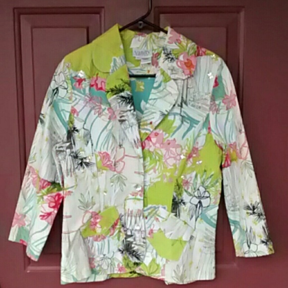 Unique Jacket with Flower Design Clear Buttons Sequins and Beading for Accent