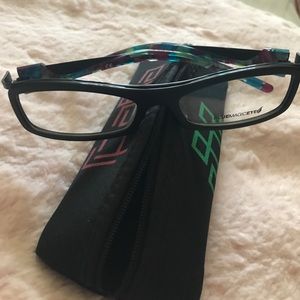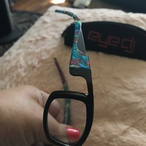 These exceptional eyeglass frames made by DC frames are very unique and lovely! Each pair of glasses are hand crafted with the best materials. All made in France and Italy. Very lightweight. Stunning colors! Comes with case. These glasses retail at $350 and up!