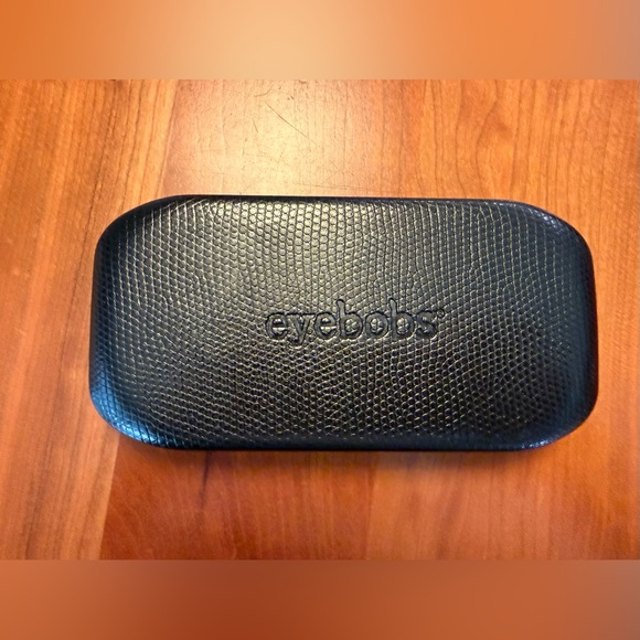 Sleek black glasses case by Eyebobs. Textured design for a stylish look.