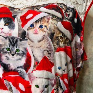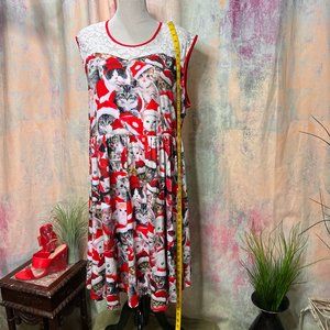 ๐Eyecatcher Christmas Party Dress with Lace Design Cute Cats with Santa Hats