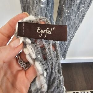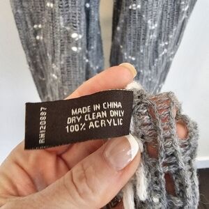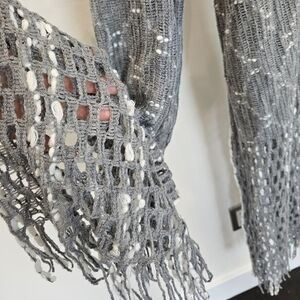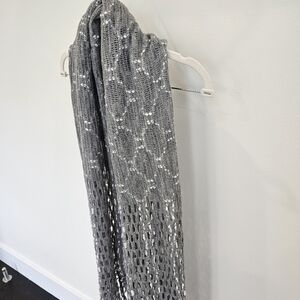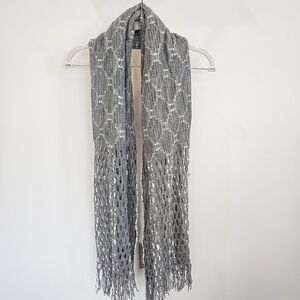 Eyeful Crochet Open Knit Gray White Fringe Scarf