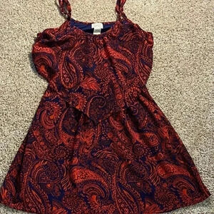 Navy Blue and Red Paisley Print. Adjustable straps. Size: small. Length: 24”. Very good condition. No rips, stains, or flaws. Smoke-free, pet-free home.
