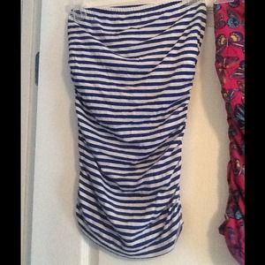 Two cute tube tops,.. Both 57% Cotton, 38% polyester, 5% spandex,.. Both have 'cinching' around the sides,.. Blue/White stripes, Size- Small... Pink Butterfly, Size- Medium