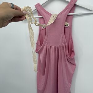 Eyelash Couture Y2k Pink Tank Top Jeweled Neckline Lace Ribbon Small Coquette