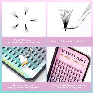 1.Specifications: VAVALASH Middle Stem & Long Stem Premade fans russian volume lash extensions 10 fans each row (3D has 20 fans each row), there are 12 rows in one tray ,total 120 fans per tray(3D has 240 fans per tray).