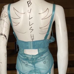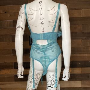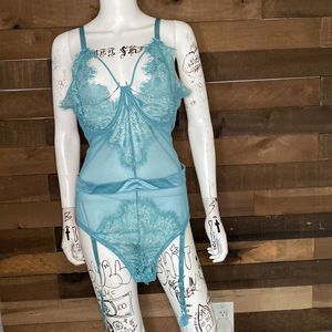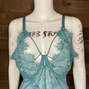 Eyelash Lace Teddy With Detachable Garters Sz 4X Turquoise