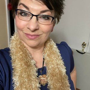 This scarf is just fun fun fun!  Can be worn as a regular scarf or “open it up” & wear it as shown in pics 1 & 2.  Very pretty cream/light brown color.