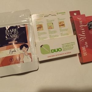 4 singke pcks lashes, two ukta beauty lash kits, lash extention glue, lash extenrion remover, two mascaras, duo glue, and makeup removing cloth great bundle for any lash person. Everything to do your lashes a few times , and remove them