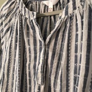 Lightweight button down with blue and white vertical stripes. Eyelet detailing. Never worn - like new!
