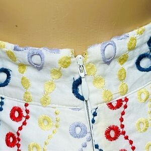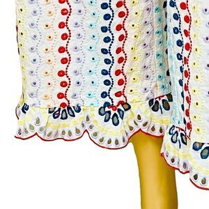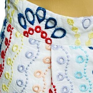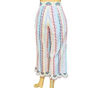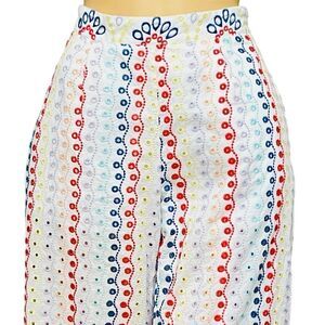 Eyelet Embroidery Boho Pants Multicolor Cropped Zip-Side Sz S