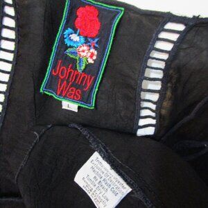 Johnny Was semi sheer black Cupra rayon shift dress, comfortable and airy. Vintage