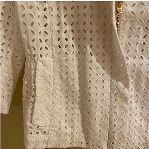 Gorgeous white eyelet blazer jacket by LOFT. In perfect condition. Only worn once. Gold colored zipper. Front pockets.Size 4. Smoke-free home.