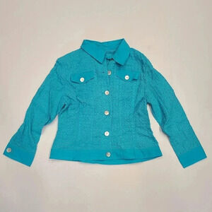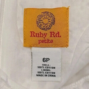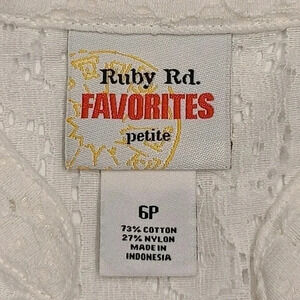 Ruby Rd. Petites Womens Eyelet Lace Tops Blouses Lot of 4 White Hot Pink Turquoise size 6P Ruby Road Petites eyelet tops. Sheer white floral eyelet top with 3/4 sleeves and button front with mother of pearl buttons, cotton nylon blend. Side slits at bottom for smooth fit and comfort. Hot pink floral eyelet top with 3/4 length sleeves and button front mother of pearl buttons, cotton nylon blend. Side slits at the bottom. Turquoise floral eyelet top with 3/4 length sleeves and button front mother of pearl buttons, cotton nylon blend. Side slits at the bottom. White sleeveless eyelet top with solid white lining underlayer and zip back, 100% cotton. All In very good preowned condition with no flaws.