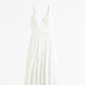 Flattering maxi dress in our lightweight cotton fabric, featuring comfortable scrunchie straps, v-neckline, a tiered skirt and all-over eyelet details.