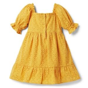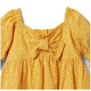 A sunny dress for any occasion, in allover eyelet with details to love like a sweetheart neckline and puff sleeves, finished with a bow in the front.