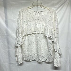 Eyelet Pullover Top , Blouse , keyhole tie in back