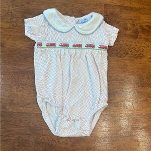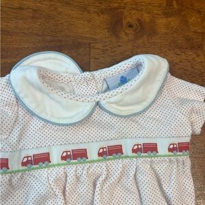 Eyelet and Ivy 100% Pima Red Polka Dot firetruck embroidered bubble size 6M